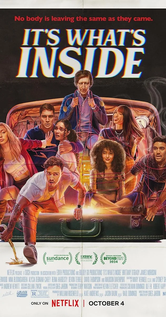 Điều bên trong – It’s What’s Inside (2024) Cuộc họp mặt trước đám cưới trở thành cơn ác mộng tâm lý đối với một nhóm bạn đại học khi vị khách bất ngờ xuất hiện cùng chiếc vali bí ẩn